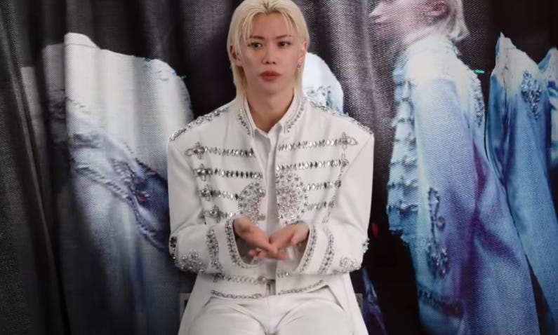 Sabemos que o Seungmin talvez seja o mais perfeccionista do grupo quando o assunto é seu trabalho e ele compartilha isso com Stays no seu depoimento. Ele diz que durante muito tempo ele acreditou que ele não conseguiria superar caso ele cometesse um erro por menor que fosse e por isso ele sempre buscou se dedicar muito e estudar muito para se sentir preparado ao ficar de frente para Stays. Sabemos também que o Seungmin ficou muito impactado com sua passagem aqui no Brasil, o que é bem curioso porque na cena do depoimento dele, há a imagem de um estádio que se parece com o Morumbis, mostrando a plateia e de fundo temos o áudio de Cover me cantado pela plateia e aquele áudio parece MUITO com as vozes de Stays brasileiras, eu não ficaria surpresa de que realmente seja considerando que em seu depoimento ele fala como se emociona vendo a reação do público durante o show e ele definitivamente se emocionou muito por aqui.